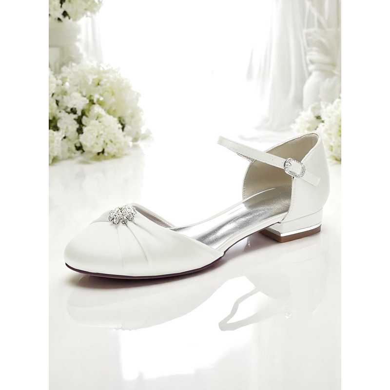 White Satin Closed-Toe Wedding Shoes with Rhinestone Ankle Strap - Bridal for Special Occasions