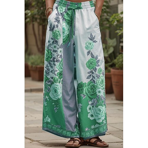 Per donna Culotte Gamba Larga Gamba larga Vacanza Vintage Stile Etnico Lunghezza intera Vita Alta Floreale Grafico Asciugatura Rapida Traspirabilità Morbido Inelastico Formale All'aperto Vacanza Rosa