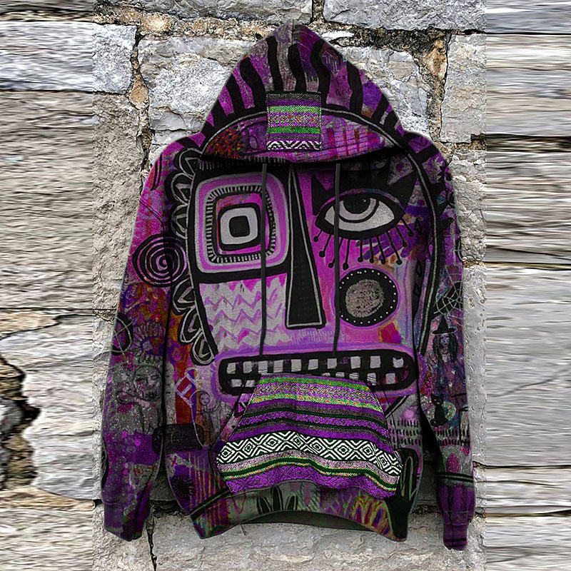 Men's Cartoon Bohemian Style Hoodie Hoodies Sweatshirt Sportswear Retro Casual Big and Tall Long Sleeve Hooded Casual Daily Sports Purple Green Rainbow Print Fall Winter Designer S M L XL XXL 3XL