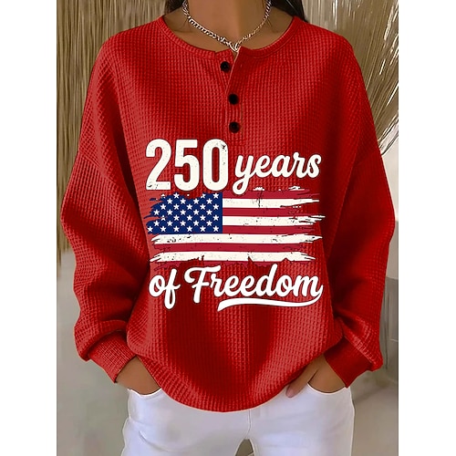 Maglietta Patriottica Giorno dell'Indipendenza Americana 250° Anniversario per Donne Felpe Grafica Lettera Moda Casual Stampa Maniche Lunghe Collo Giro Casual Street Bottoni Blu Nero Rosso Viola
