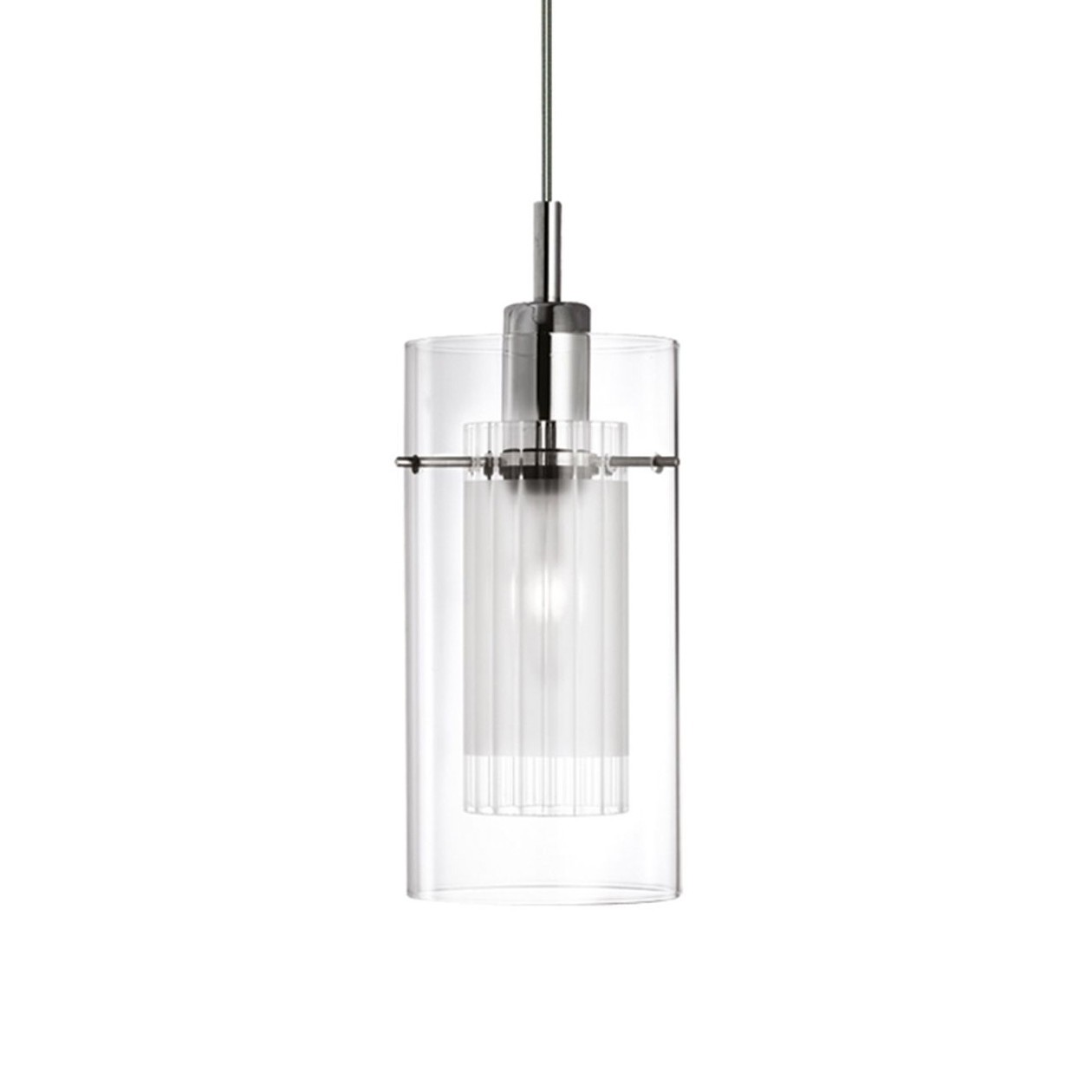 Searchlight Duo 1 - lampe suspendue - Ø 13 x 100 cm - chrome et verre glacé