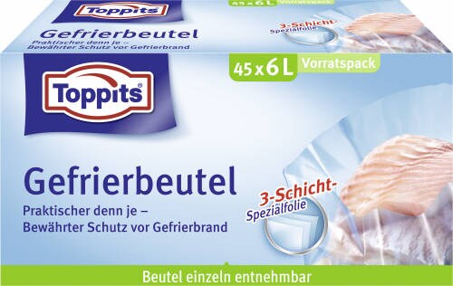 Toppits Gefrierbeutel, 29 x 47 cm, 6 L, 45 Stück