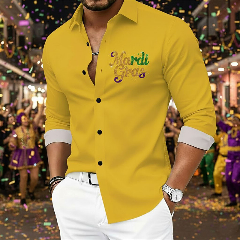 Men's Mardi Gras Shirt – Minimal Carnival Party Button Up Graphic Shirt