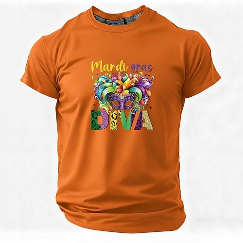 Mardi Gras 2026 T-shirt Sleeve T-shirt for Men's Adults' Hot Stamping for Carnival Mardi Gras Club Festival