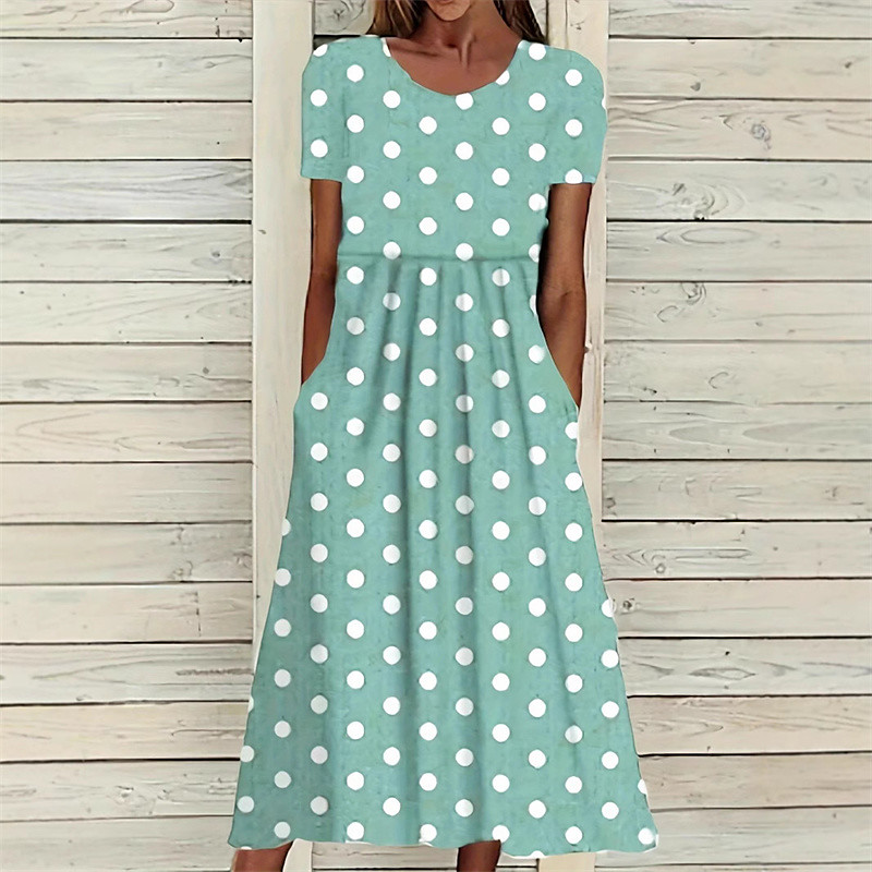 Women's Midi Dress Casual Dress Summer Dress Fashion Modern Daily Beach Weekend Regular Fit Dot Short Sleeve Crew Neck Green Spring Fall
