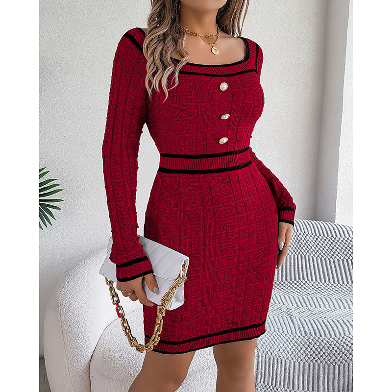 Women's Mini Dress Sweater Dress Bodycon Bodycon Dress Elegant Fashion Modern Office Party Going out Regular Fit Slim Color Block Long Sleeve Square Neck Blue White Wine Green Spring Fall Winter