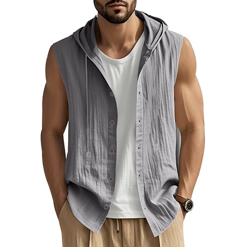 Herren Tank Top Weste Unterhemd Ärmelloses Shirt Ärmellos Mit Kapuze Sommer Einfach Mode Designer Basic Knöpfe Urlaub Straße Ausgehen Schwarz Weiß Gelb Top T-Shirt für Herren