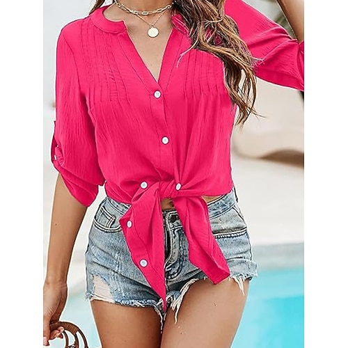Per donna Abbigliamento da Casa Accappatoio Moda Casual Morbido Colore Puro Patchwork Vestiti Casa Vacanza Manica Lunga Scollo a V Blu Nero Bianco Rosa Vino Estate Primavera Autunno Vestibilit
