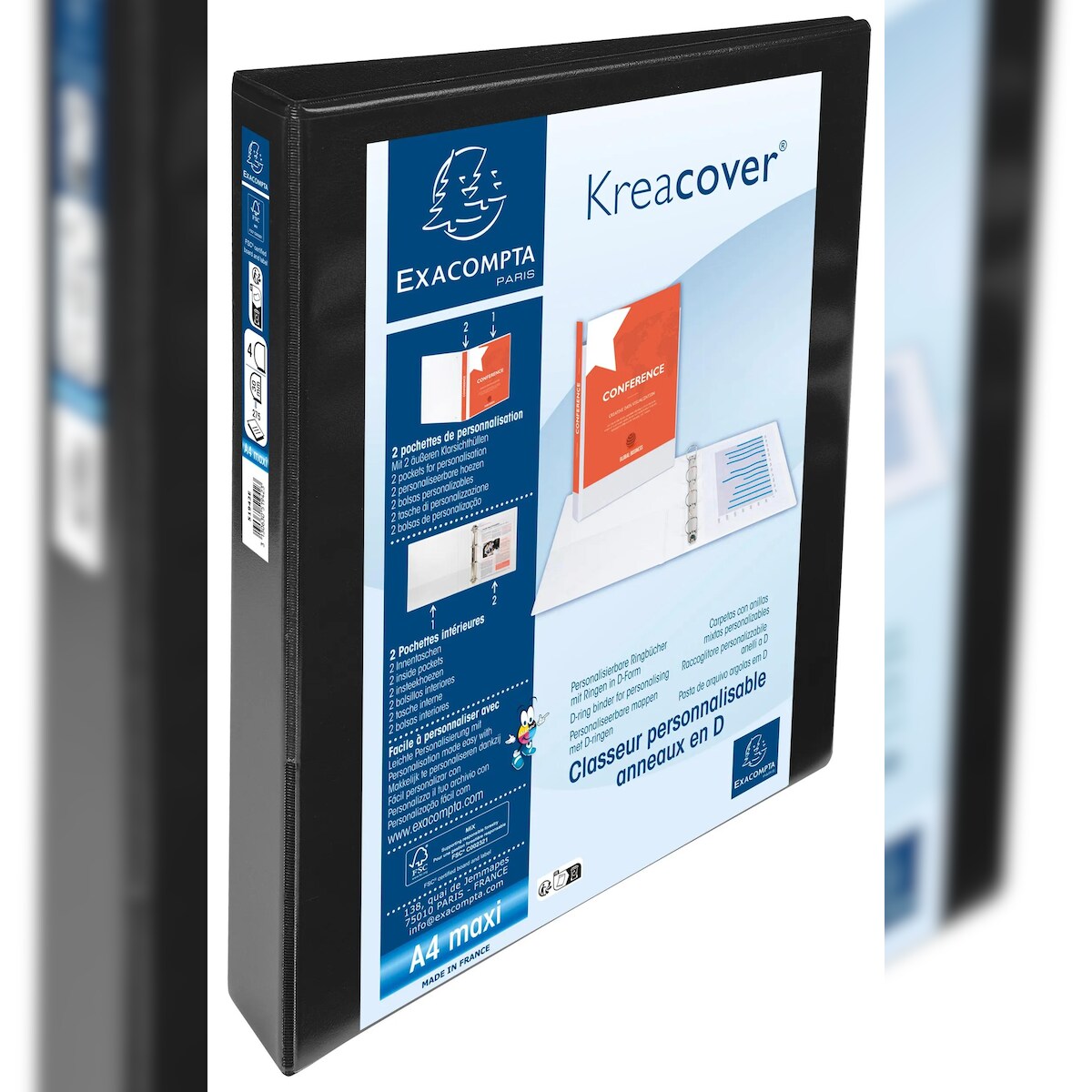 Exacompta Ringbuch aus festem Karton 1,8mm PP kaschiert, 2 Ringe 25mm rund am hinteren Deckel befestigt, Rücken 40mm, 32x25,5cm für DIN A4