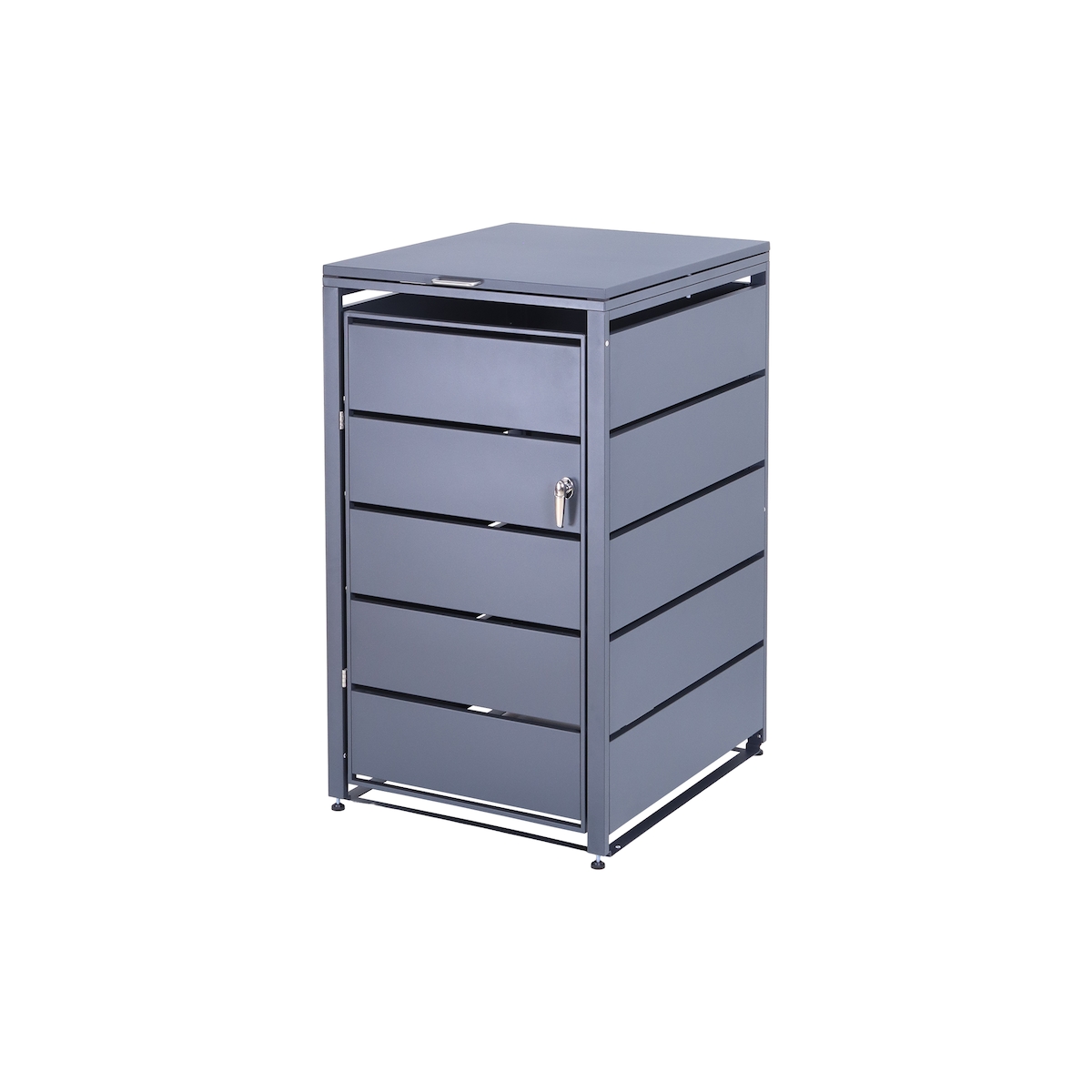 Albatros Mülltonnenbox 1er Tonne | bis 240 Liter | Anthrazitgrau RAL 7016 | verzinkter Stahl | Premium Dämpfer| Aufkleber-Set | wetterfest