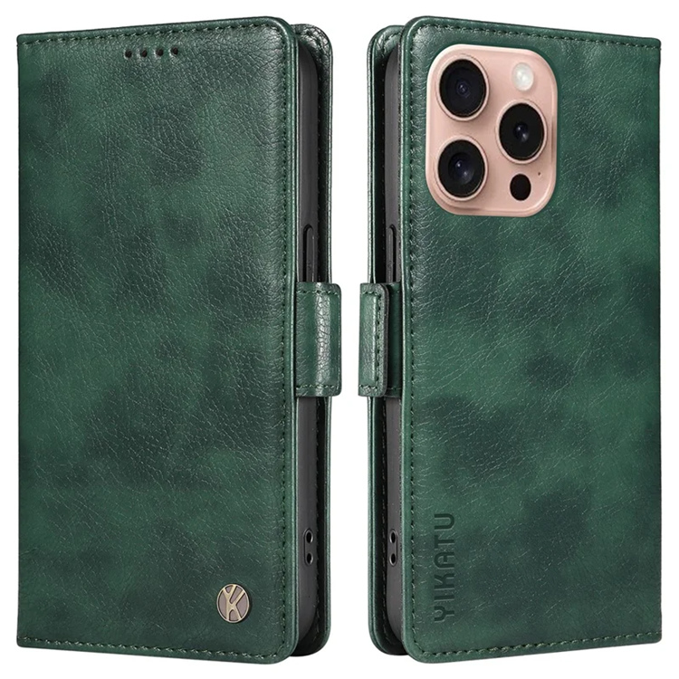 YIKATU iPhone 16 Pro Konstläder Plånboksfodral Litchi Texture - Grön