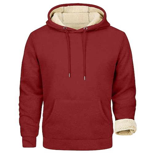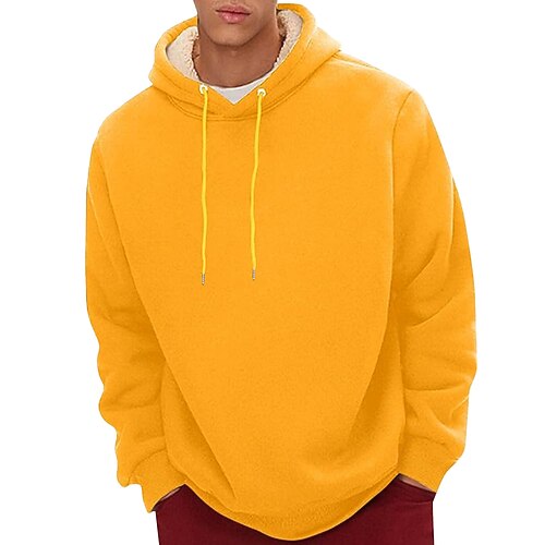 Per uomo Felpa con cappuccio in pile Felpa con cappuccio in pile Sherpa Aalbicocca Nero Giallo Vino Blu marino Con Cappuccio Semplice Coulisse Casuale Quotidiano Uscire Poliestere Streetwear Casual