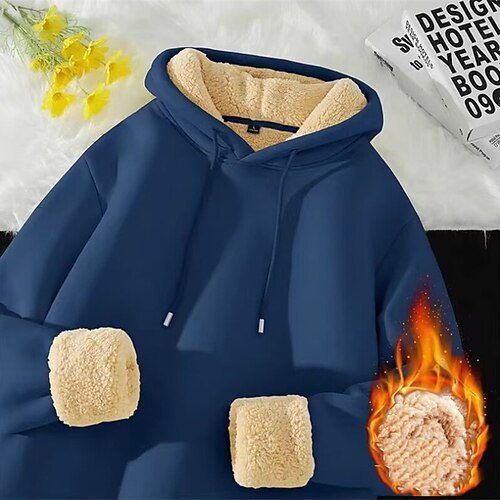 Per uomo Felpa con cappuccio Felpa con cappuccio in pile Felpa con cappuccio foderata in pile Blu Aalbicocca Nero Bianco Giallo Con Cappuccio Semplice Tasca a marsupio Casuale Quotidiano Sport