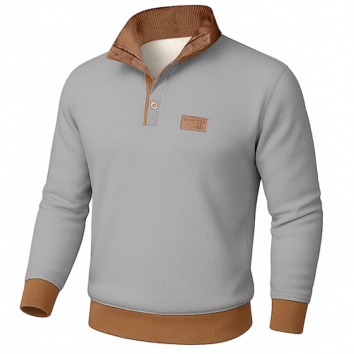 Per uomo Maglia Velluto a coste Felpa in pile Maglione Felpa con cappuccio abbottonata Aalbicocca Nero Verde militare Blu marino Blu Colletto Mao Semplice Patchwork Blocco di colore Testurizzato