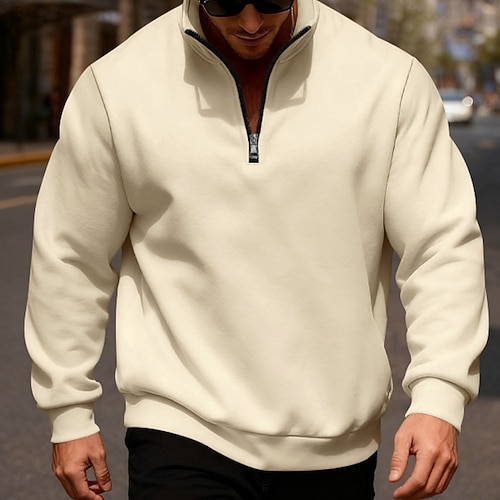 Per uomo Maglia Felpa in pile Maglione Felpa con zip corta Aalbicocca Nero Bianco Blu marino Cammello Mezza zip Semplice Casuale Quotidiano Sport Outdoor Streetwear Essenziale Casual Autunno Inverno