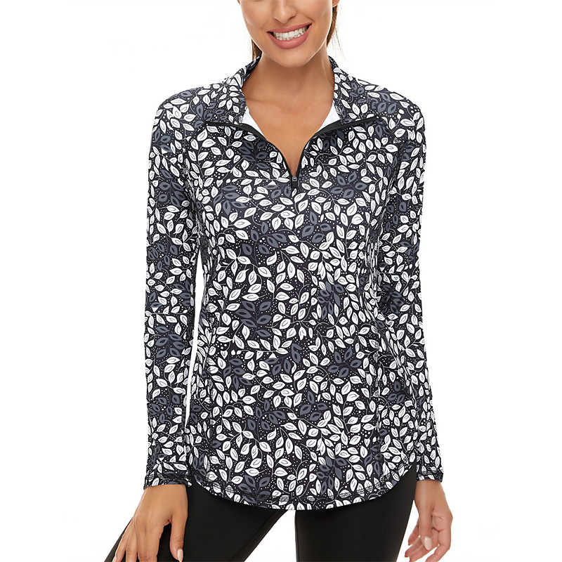 Women's Floral Golf Polo Shirt Tennis Shirt Long Sleeve Print Quarter Zip Pullover UV Protection Elastic Breathable Tennis Golf Pickleball Zip Collar Shirt Polo Pink Blue Gray Tennis Clothing