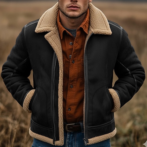 Per uomo Giacca in finta pelle scamosciata Giacca in Pile Giacca Sherpa Giacca in Camoscio Marrone Casuale Casual Quotidiano Giacca a Vento Patchwork Tasca Inverno Tinta unica Vintage Moda Colletto a