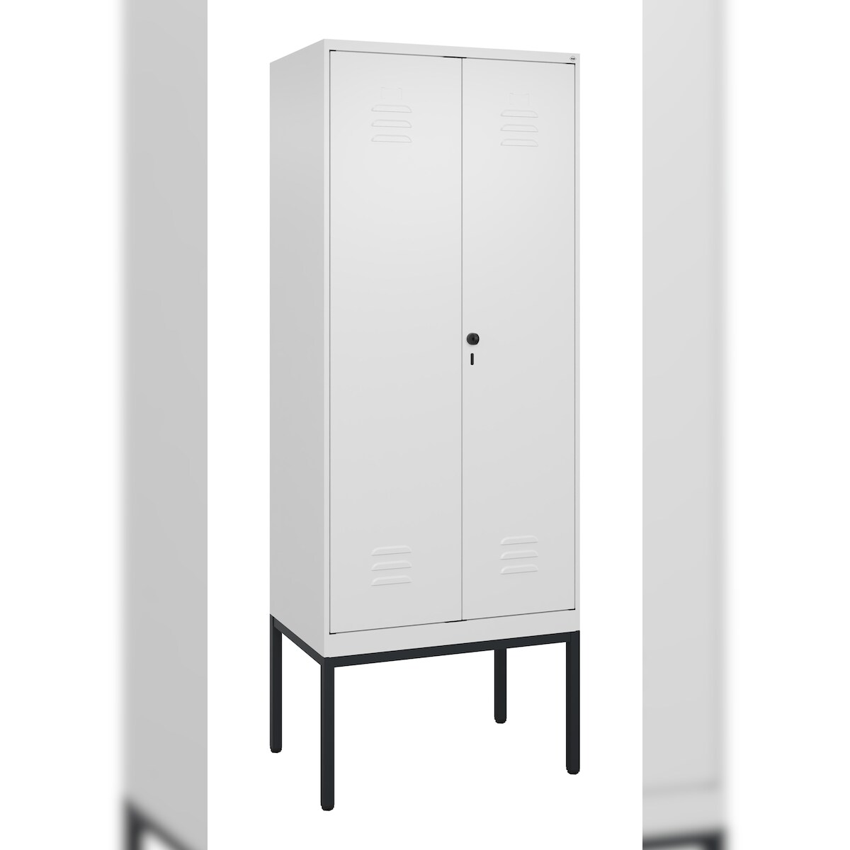 C+P Schwarz-Weiß-Spind Classic PLUS, Füße, 2 Abteile, 1950x800x500mm, 7035/3003