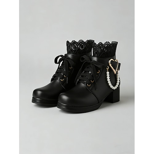 stivaletti da sposa bianchi da donna – scarpe da sposa allacciate con decorazione a cuore e perle, tacco spesso per spose di ispirazione vintage