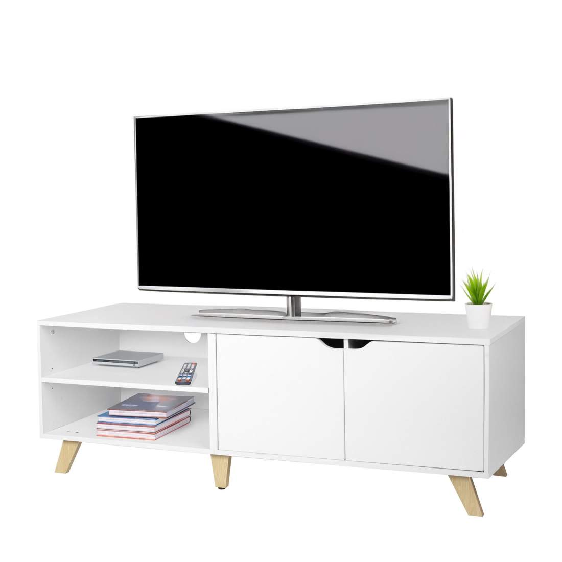 Homcom Mobile Porta TV max 50" con Cassetto, Ripiano Aperto e Armadietti, 110x40x50 cm, Bianco e Legno