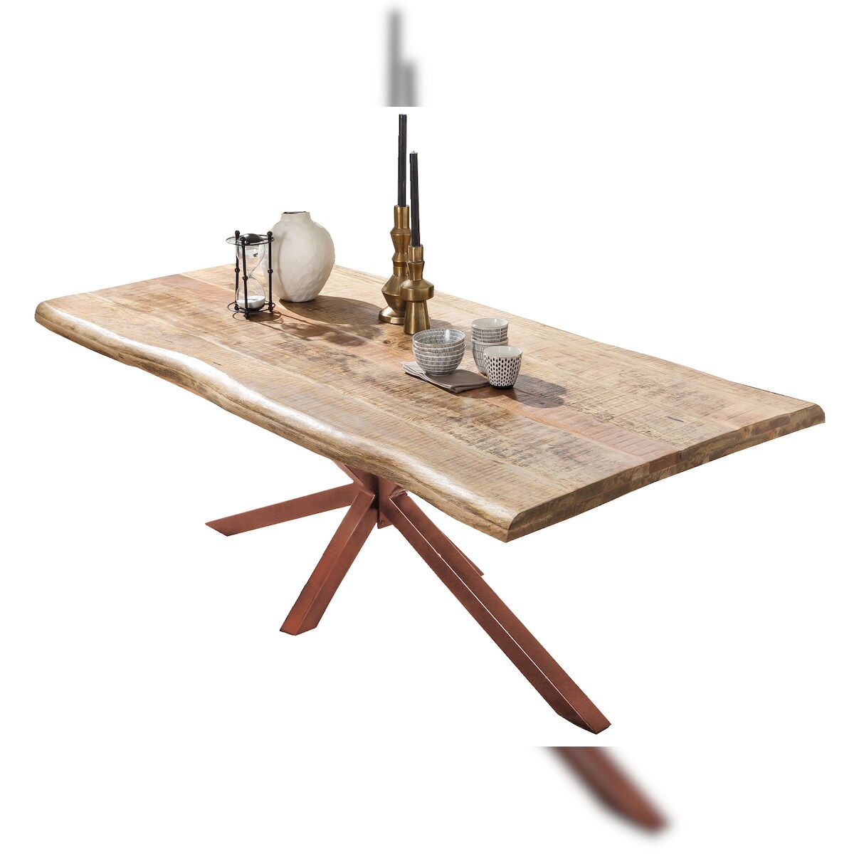 SIT Möbel Baumkante-Esstisch | 180x90 cm | 50 mm Platte Mango natur | Metallgestell braun | B 180 x T 90 x H 77 cm | 15251-00 | Serie TABLES & CO