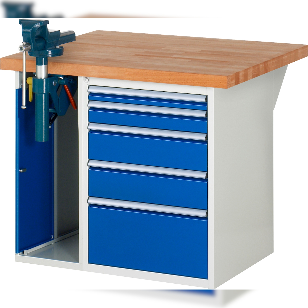 PROREGAL Werkbank Serie 7000 - Modell 7511 | HxBxT 84x100x90cm | 5x Schublade + 1x Schrank | Schubladenmaße 1x60 + 1x90 + 2x150 + 1x270mm