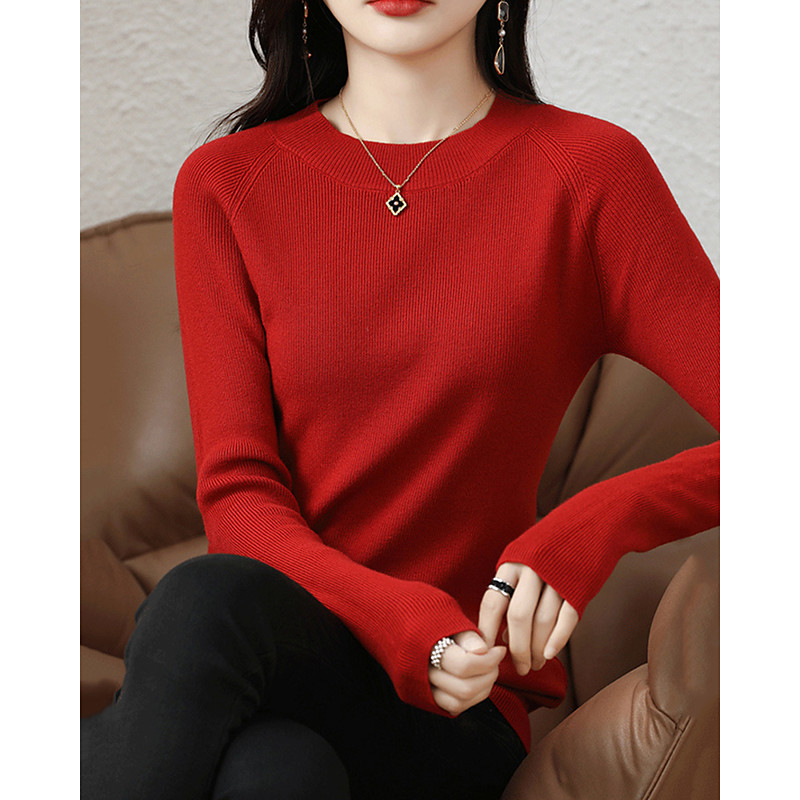 Women's Sweater Pullover Elegant Fashion Streetwear Pure Color Ribbed Crew Neck Knitted Long Sleeve Regular Tops Knit Outdoor Daily Weekend White Red Fall Winter