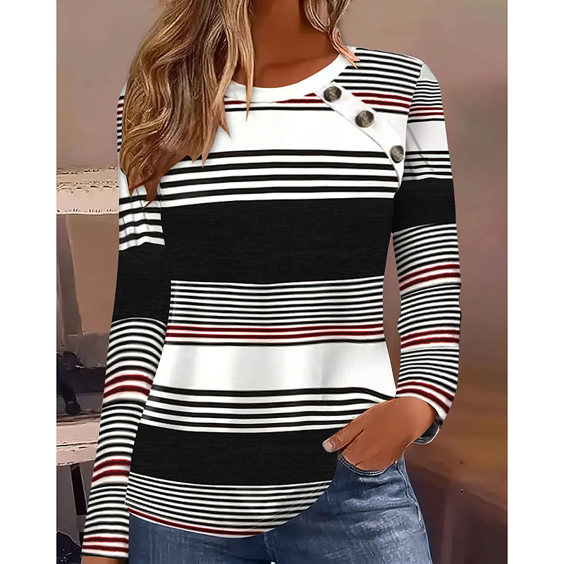 Women's Blouse Striped Tropical Stylish Casual Long Sleeve Crew Neck Regular Tops Daily Holiday Going out Patchwork Black Green Gray Spring Fall Winter