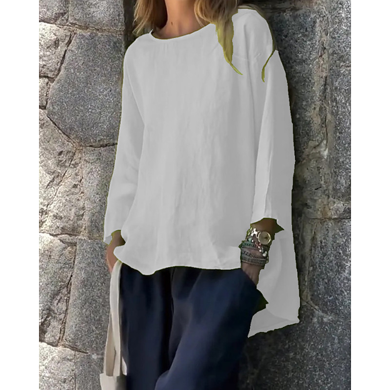 Women's Blouse Solid Color Active Casual Long Sleeve Crew Neck Regular Tops Daily Holiday Asymmetric Hem Black White Yellow Red Green Fall Winter