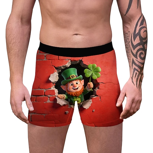 San Patrizio 2026 Leprechaun Trifoglio Irlandese fortunato Carnevale Boxer aderenti Biancheria intima Cosplay Adulti Per uomo Giorno di San Patrizio Casuale Feste Costume di Carnevale facile Vestirsi