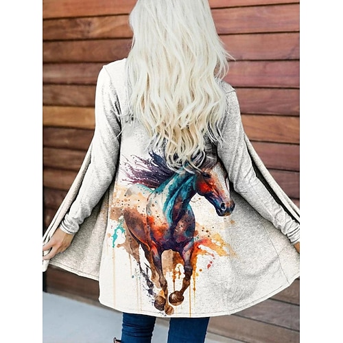 Per donna Giacca Casual Caldo Confortevole Orlo irregolare Aperturaanteriore Elegante Vintage Moda Moderno Animale Streetwear Casuale Athleisure Quotidiano Lungo Senza colletto Vestibilità comoda