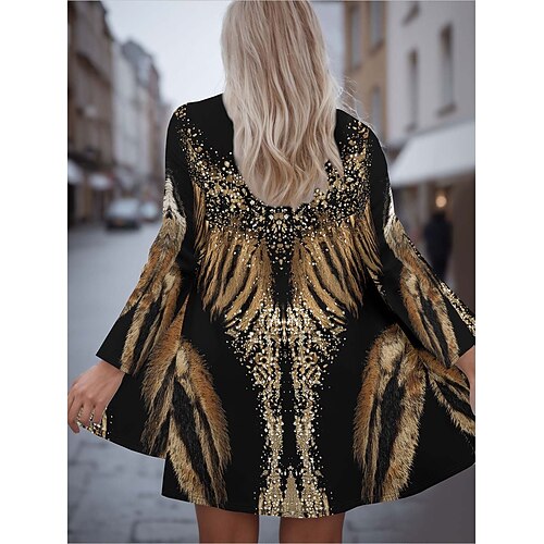 Per donna Mini Abito Abito a Tubino Casual Quotidiano Vestibilità comoda Ombre Leopardo Manica Lunga Scollo a Barca Rosa Marrone Primavera Autunno