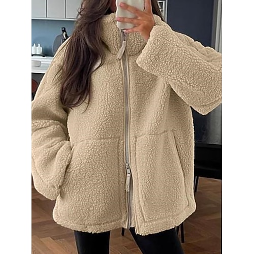 Per donna Giacca Sherpa Confortevole Traspirante Cerniera Tasca Casual Semplice Vacanza Streetwear Casuale Abbigliamento quotidiano Cerniera Regolare Collo alla coreana Vestibilità comoda Manica Lunga