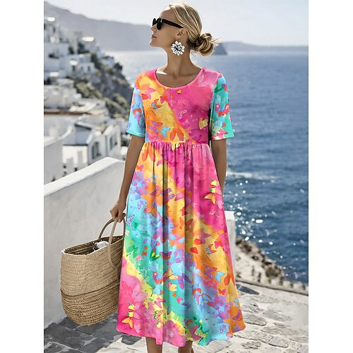 Per donna Abito Midi Abito a Tubino Vacanza Casual Ferie Vestibilità comoda Ombre Grafico Farfalla Manica Corta Girocollo Blu Giallo Rosa Viola Estate Primavera