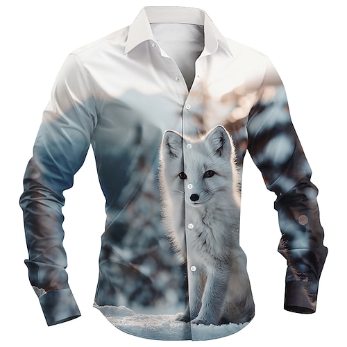 Per uomo Animale Volpe Natura e paesaggi Camicia Camicia con Bottoni Manica Lunga Vintage Retrò All'aperto Casuale Caccia Primavera Autunno Collo ripiegato Stampa 3D camicie con colletto Bianco Verde