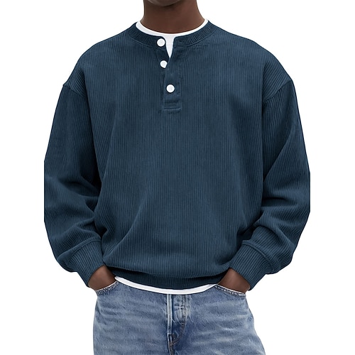 Per uomo Camicia di Velluto a Coste Maglia Henley Maglietta Manica Lunga Tinta unica Semplice Moda Designer Casual Cardigan con Bottoni Caldo Henley Casuale Quotidiano All'aperto Autunno Inverno