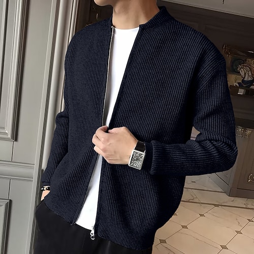 Per uomo Felpa Cardigan Maglione con Zip A Coste Maglia Top Regolari Lavorato a maglia Tinta unica Colletto Mao Vacanza Moda Casuale Abbigliamento quotidiano Abbigliamento Primavera Autunno Nero