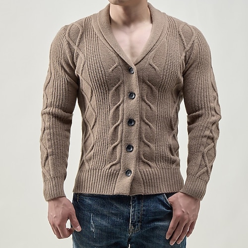Per uomo Felpa Cardigan A Coste Treccia Maglia Top Regolari Cardigan con Bottoni Lavorato a maglia Tinta unica Collo a scialle Vacanza Moda Casuale Abbigliamento quotidiano Abbigliamento Primavera