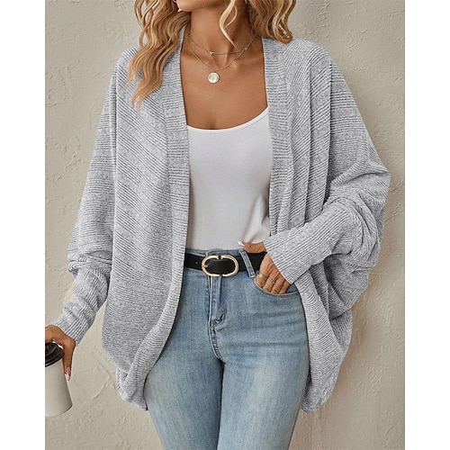 Per donna Cardigan Elegante Casual Morbido Tinta unica A Coste Aperto davanti Tasca Manica Lunga Top lunghi Maglia All'aperto Quotidiano Weekend Nero Bianco Estate Autunno