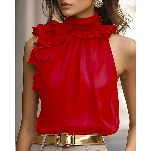 Per donna Top estivi Blusa Top Eleganti Tinta unica Semplice Elegante Vintage Carino Senza Maniche All'americana Top Regolari Quotidiano Lavoro Ferie Arricciato Volant Patchwork Nero Rosso Marrone