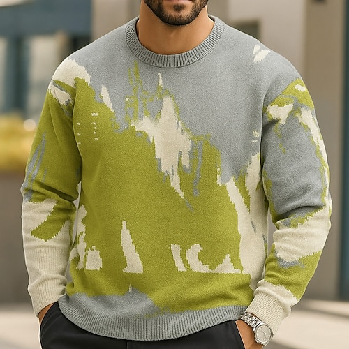 Per uomo Blocco di colori Maglione Maglieria Girocollo Casual Vacanza Casa Quotidiano Stampa 3D Lavoro a maglia Tenere al caldo Manica Lunga Primavera Autunno Inverno Nero Verde
