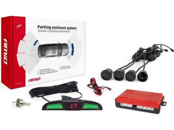 Parkavimo pagalbos sistema LED COB, 4 juodi jutikliai 22 mm AMIO-02281