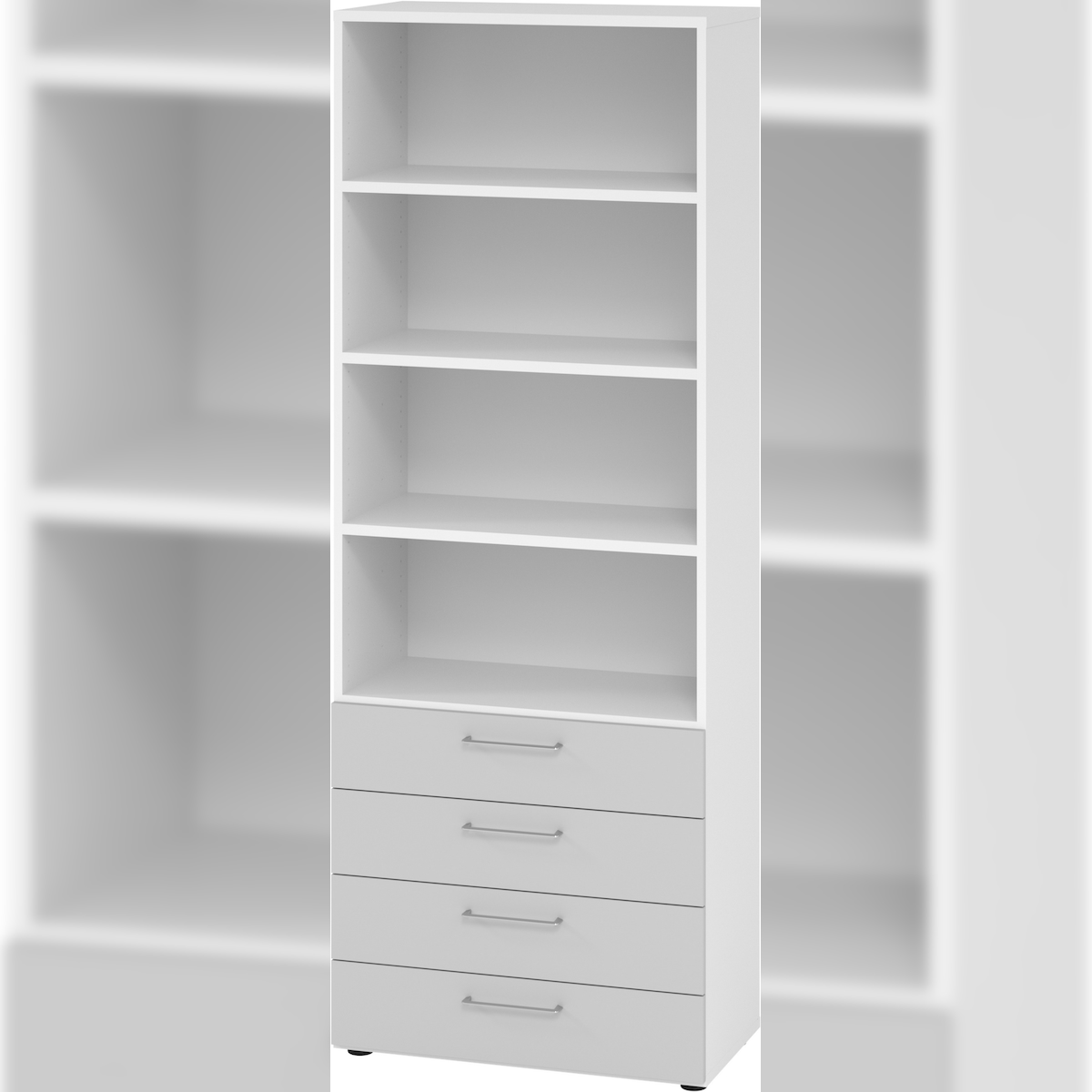 bümö smart Schubladenschrank, Büroschrank 80cm breit in Weiß/Grau mit 4 Schüben & 4 Regalfächern - Bürocontainer aus Holz, Container mit
