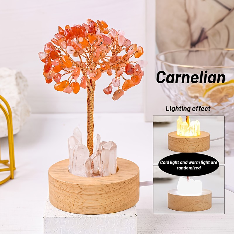 1pc Natural Clear Quartz Crystal Chip Tree - USB Port Decorative Bedside Ambiance Nightlight