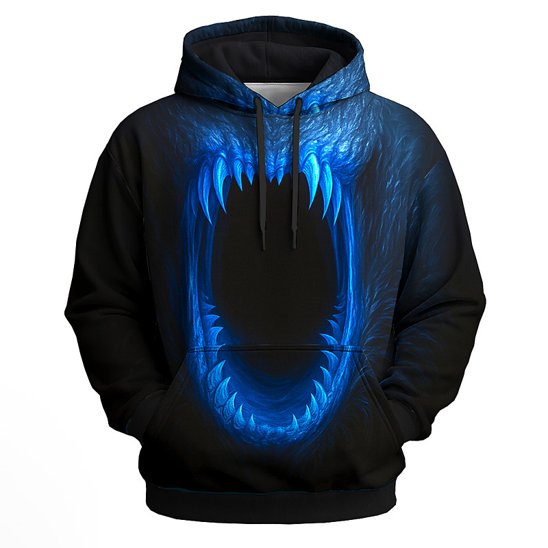 Men's 3D Mouth Hoodies Sweatshirt Punk Exaggerated Gothic Casual Long Sleeve Crew Neck Hooded Club Streetwear Red Blue Green Drawstring Fall Winter Designer S M L XL XXL XXXL