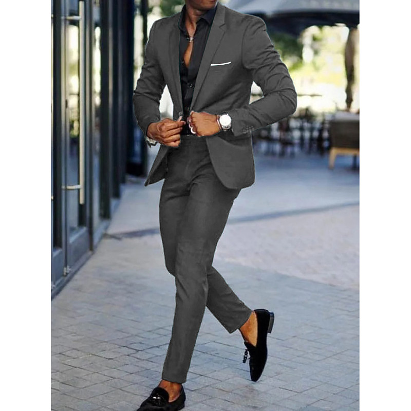 Men's Wedding Party Party Suits Black Luxury Formal Solid Colored Standard Fit 2 Piece Single Breasted One-button