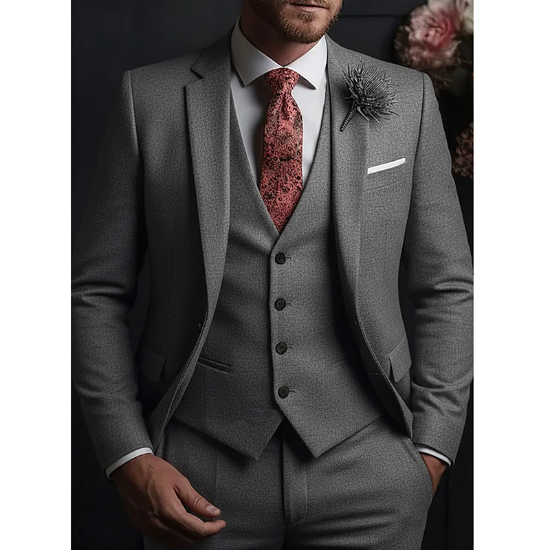 Men's Wedding Casual Business Suits Notch Lapel Black Burgundy Daily Business Solid Colored Tailored Fit 3 Piece Single Breasted One-button