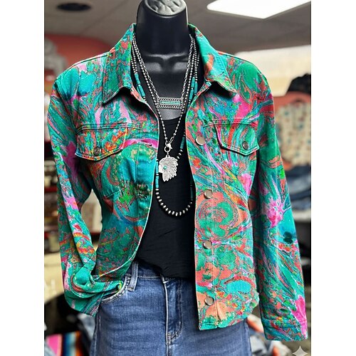 Damen Jacke Warm Leicht Knöpfe Druck Aktiv Vintage Künstlerisch Lässig Blumen Lässig Regulär Umlegekragen Normale Passform Langarm Oberbekleidung Blau Grün Beige Frühling Herbst