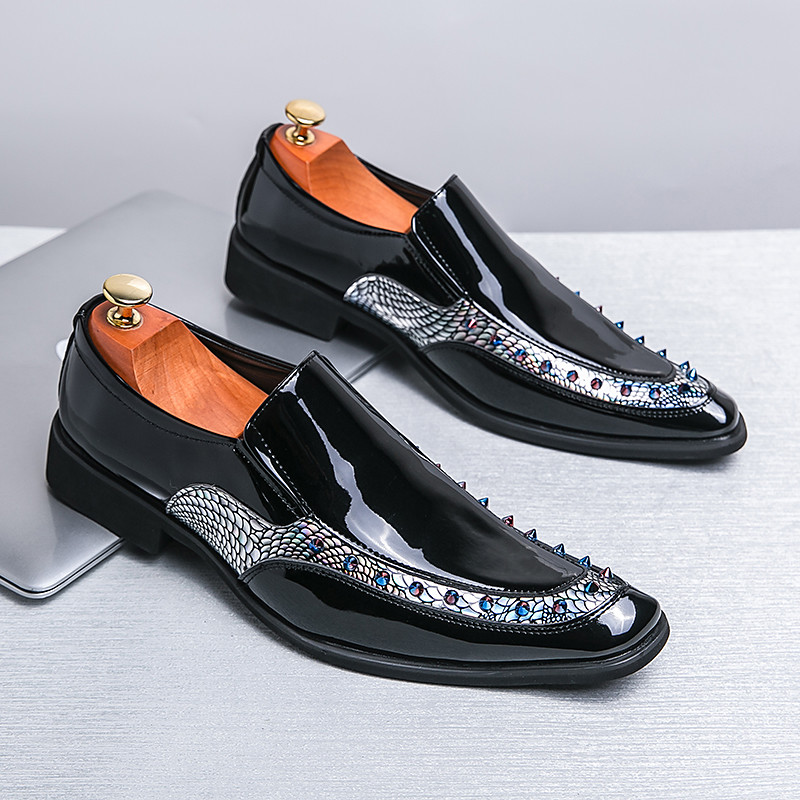 Men's Gold Patent Leather Slip-on Shoes with Crystal Accent - Luxury Footwear for Parties and Gala Events
