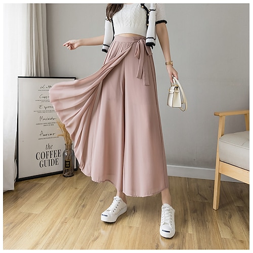 Per donna Culotte Gamba Larga Gamba larga Chinos Elegante Vacanza Streetwear Lungo Vita Alta Semplice Tasca Elastico in vita Design con Coulisse Elastica Confortevole Traspirante Inelastico